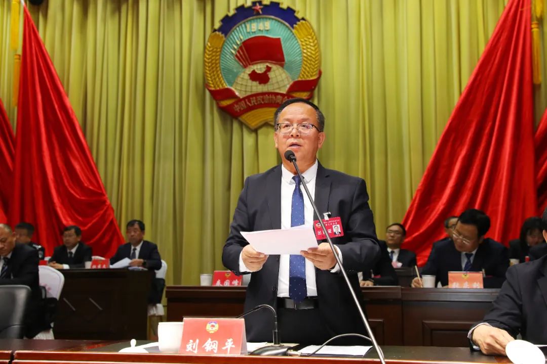 县政协主席刘钢平主持。县政协副主席王卫东、关国庆、安丽琴、李静,县政协秘书长魏平在主席台前排就座。