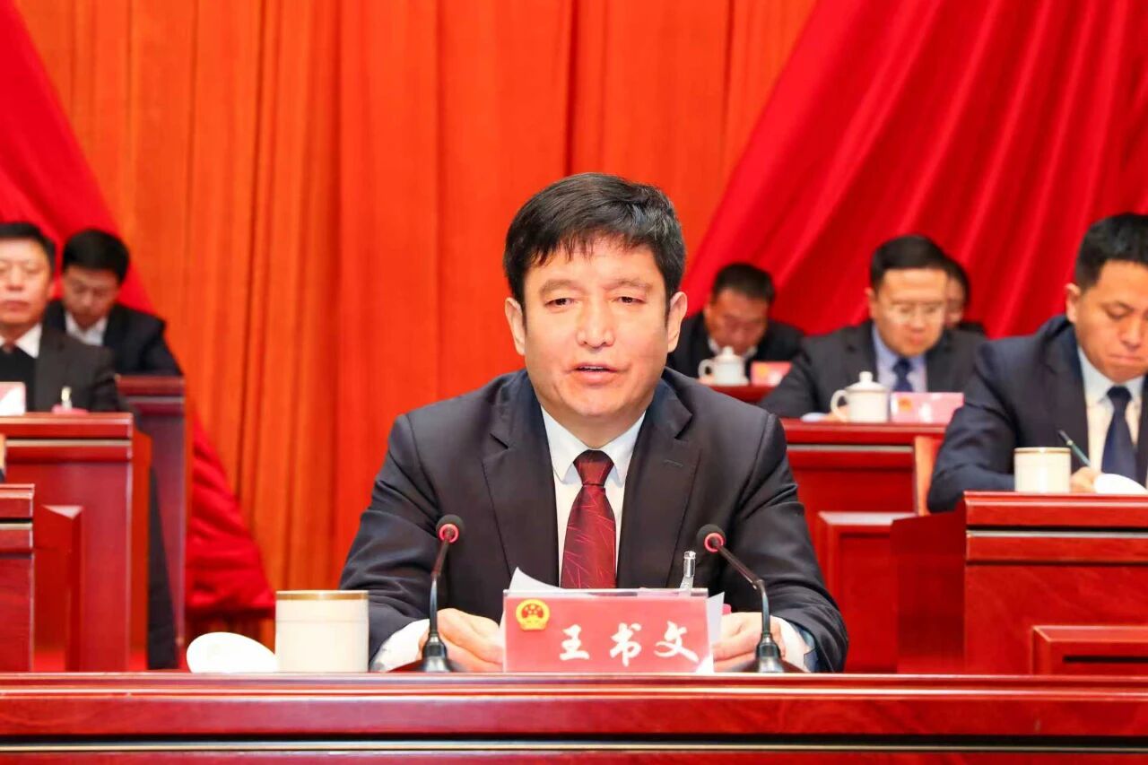 完成大会各项议程后,县委书记王书文讲话。他指出,县十六届人大七次会议期间,各位代表牢记人民重托,忠实履职尽责,共商发展大计,展现出强烈的使命担当和良好精神风貌。大会开得很成功,是一次高举旗帜、凝心聚力、团结奋进的大会。