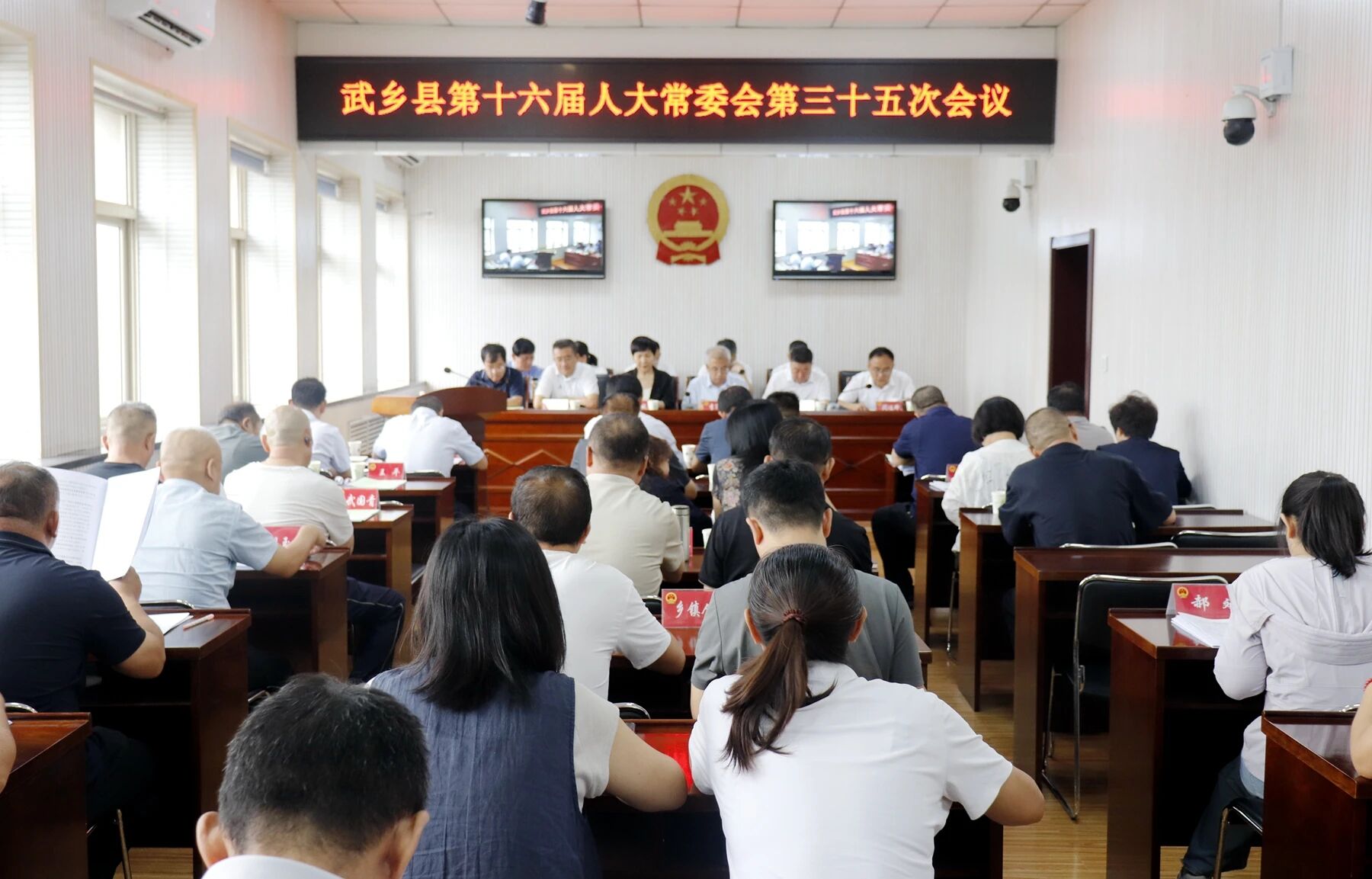 8月29日,县第十六届人大常委会第三十五次会议召开。县人大常委会主任李军印,副主任成彩娥,党组成员王五堂,副主任崔宏伟、杜秀文出席。县人大常委会副主任闫佳珅主持。县委常委、常务副县长郭栋,县委常委、副县长高敏智,副县长郝宏德,县人民法院院长高峥,县人民检察院检察长张军亮及县直相关单位负责人,各乡镇人大主席列席。县政协副主席安丽琴应邀列席。