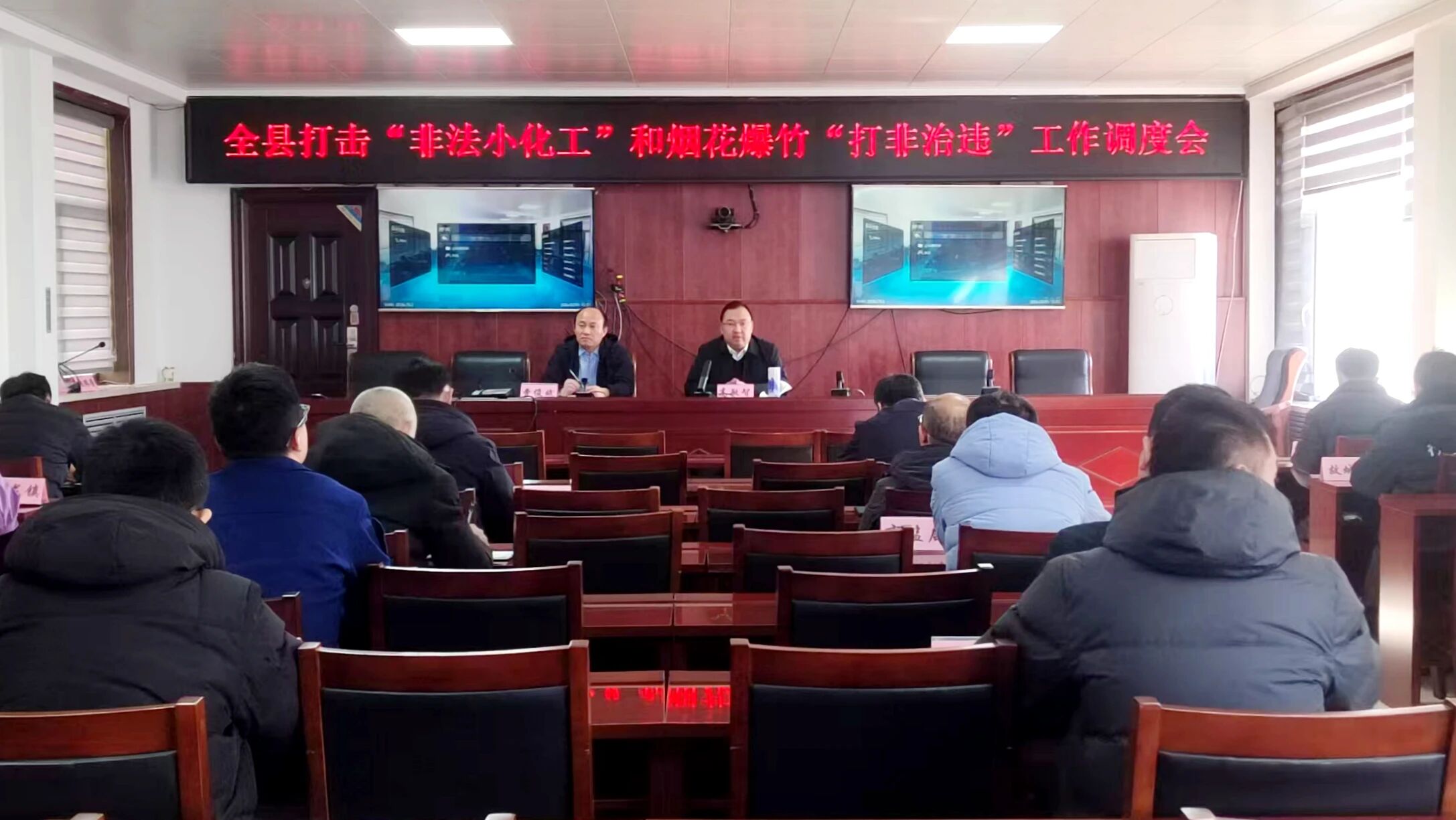 2月1日,全市打击“非法小化工”和烟花爆竹“打非治违”工作调度会召开。县委常委、副县长高敏智及各乡镇、县直相关单位负责人在我县分会场收听收看。