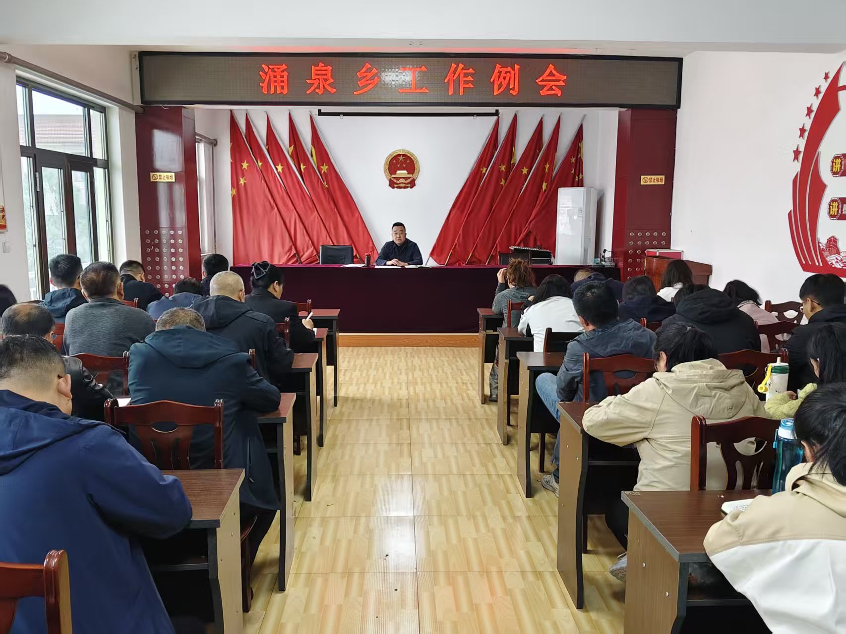 涌泉乡召开重点工作安排会议,乡党委书记、乡长贾宝主持会议。会议重点围绕安全生产、应急值守、防汛防火、地质灾害排查、巩固拓展脱贫攻坚成果同乡村振兴有效衔接、及“一事一议”项目等重点工作进行具体部署,要求乡村两级干部压实责任,确保各项工作有序推进。全体乡干、到村工作大学生、选调生,各村支书主任参加。