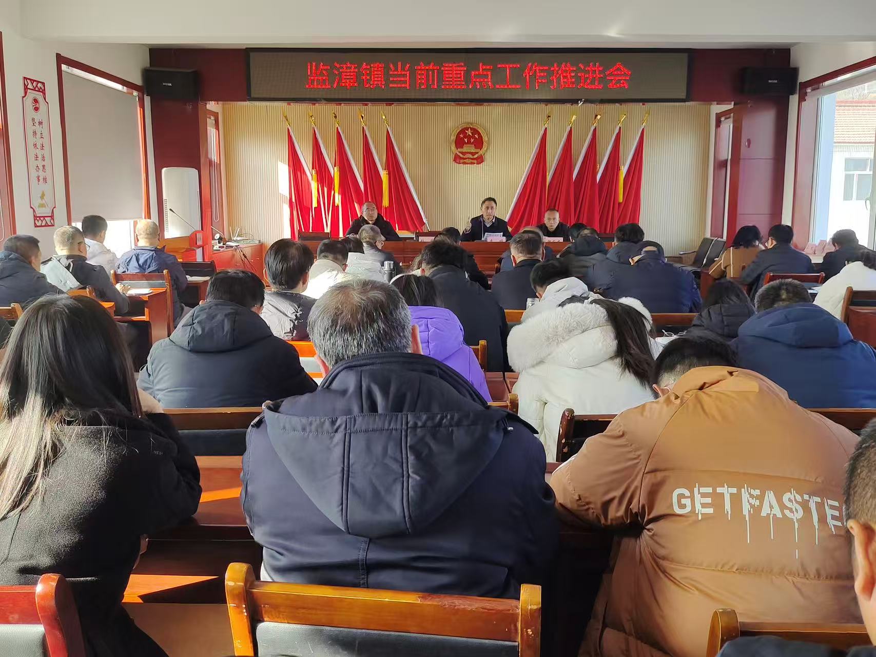 12月8日,监漳镇召开当前重点工作推进会,党委副书记、镇长李明主持,全体机关干部、各村支书、驻村工作队长、第一书记、联络员参加。会议集中学习《中国共产党工作机关条例》,传达2025年市安委会全体(扩大)会议暨全市高层建筑重大火灾风险隐患排查整治行动部署会、全市食品药品安全工作电视电话会、县委常委会(扩大)会等会议精神,随后各分管领导结合实际对巩固衔接、医保缴费、安全生产、护林防火等工作进行安排。
