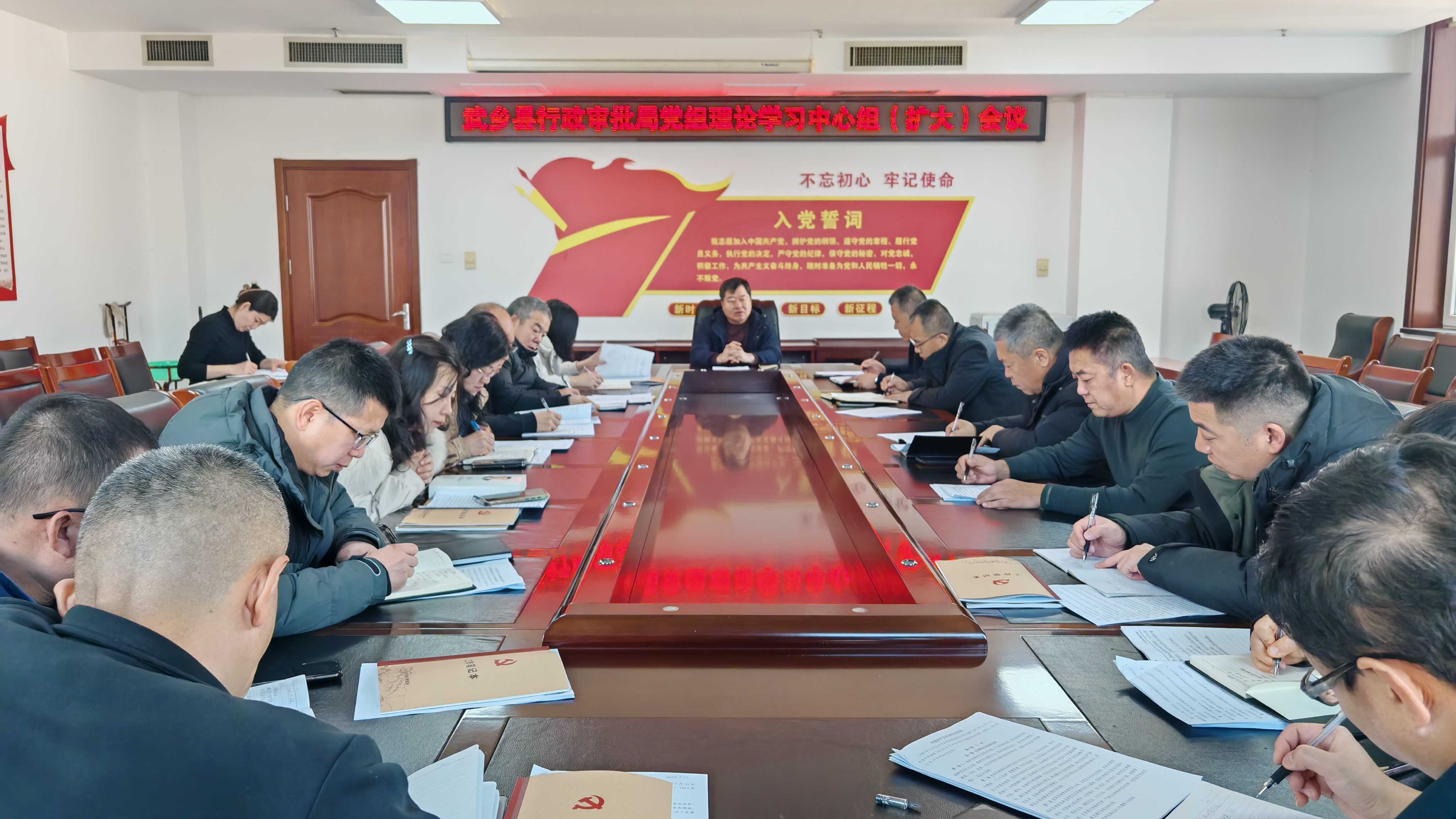 1月12日,武乡县行政审批服务管理局召开党组理论学习中心组(扩大)会议,党组书记、局长赵爱芳主持,局党组成员、各股室、各中心负责人参加。