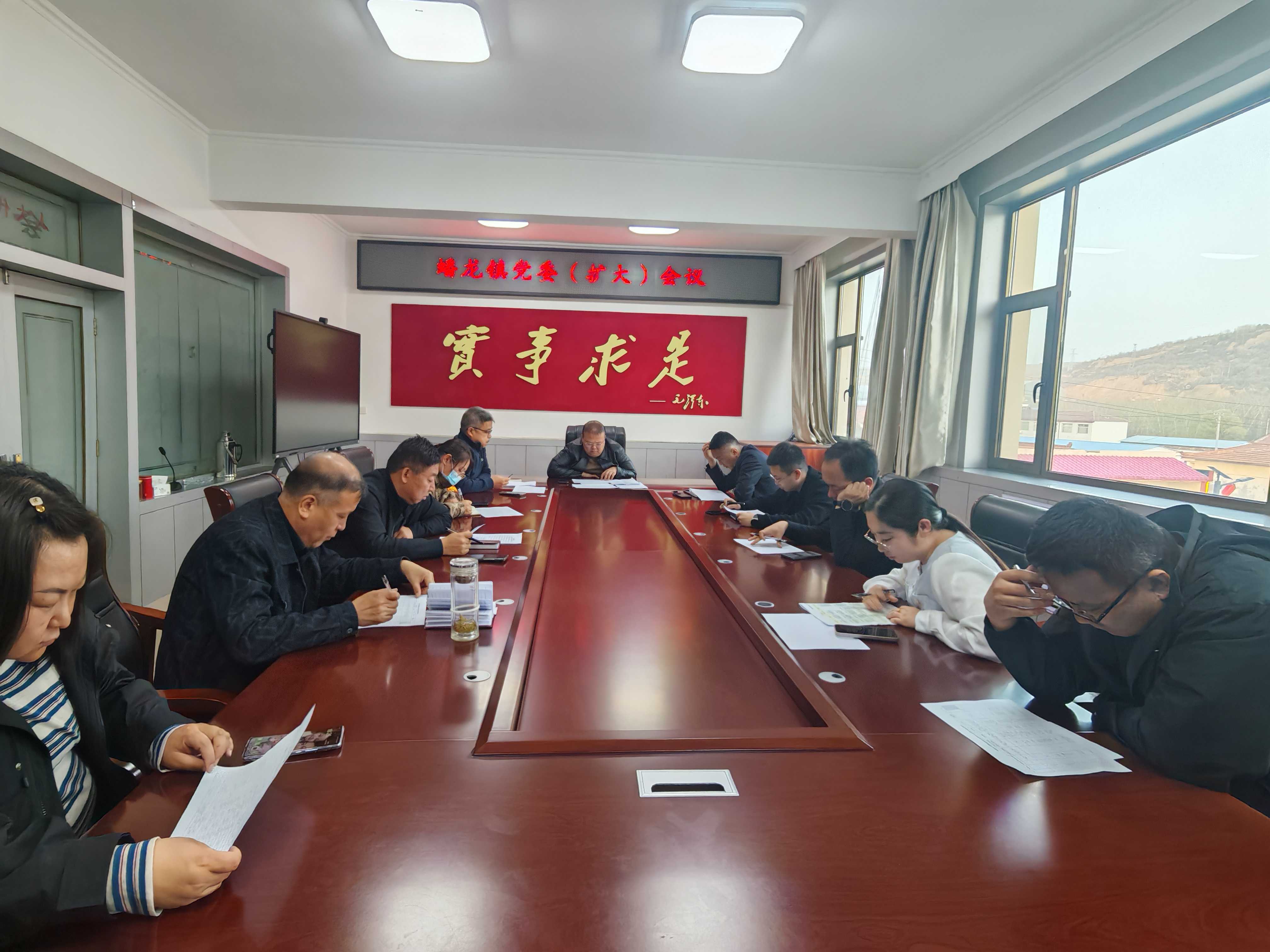 4月10日, 镇党委书记崔路鹏主持召开党委(扩大)会议,党政班子成员、事业副科参加,会议传达学习近期县级相关会议精神,并对软弱涣散村党组织整顿、群腐集中整治、两员三平台、森林防火、环境卫生整治、青年志愿者、信访维稳等当前重点工作进行统筹部署。