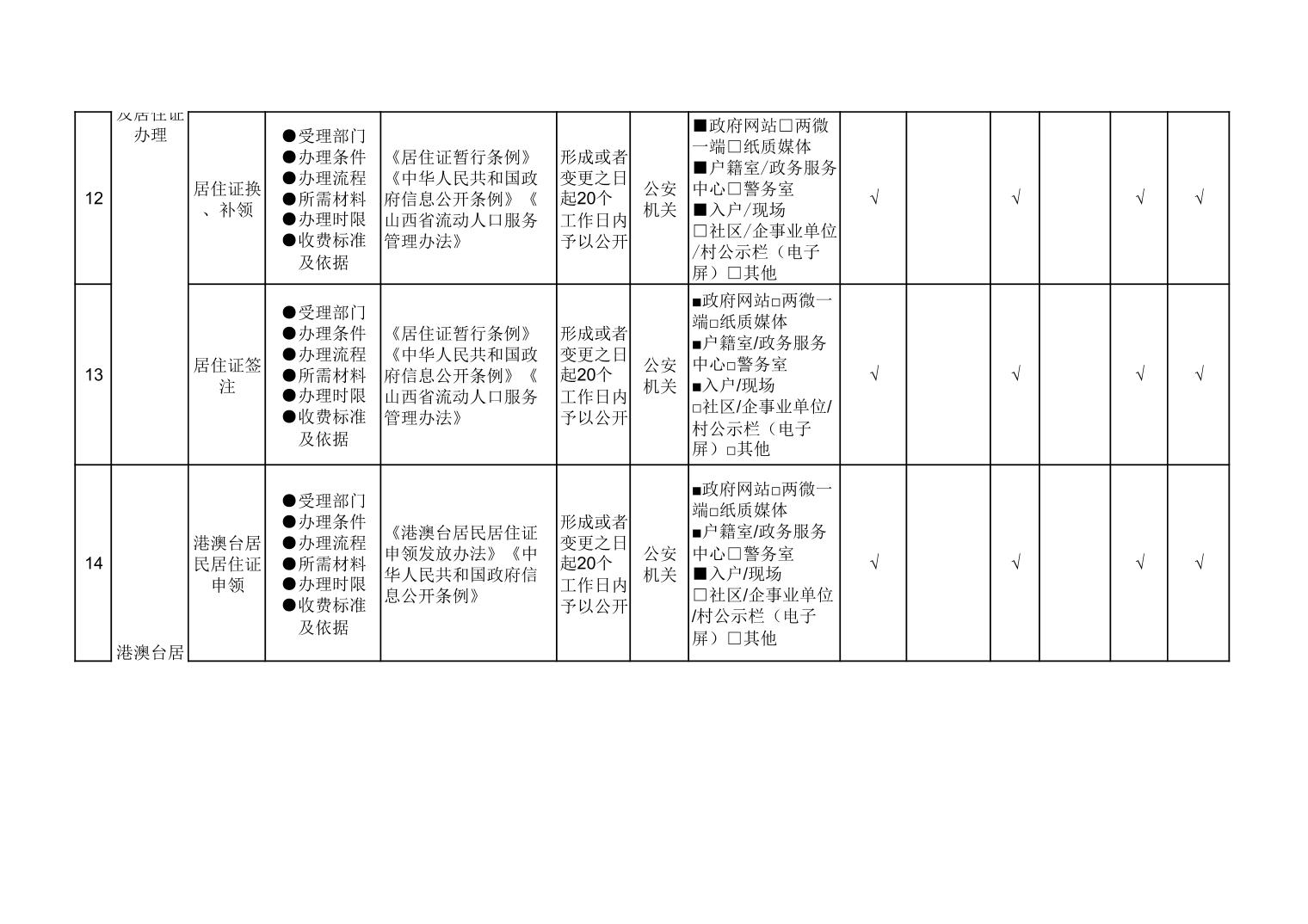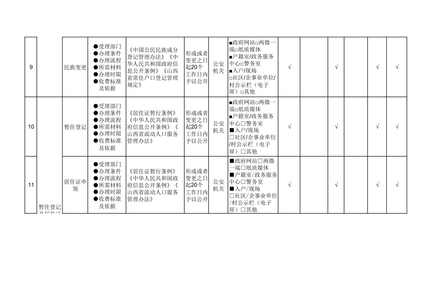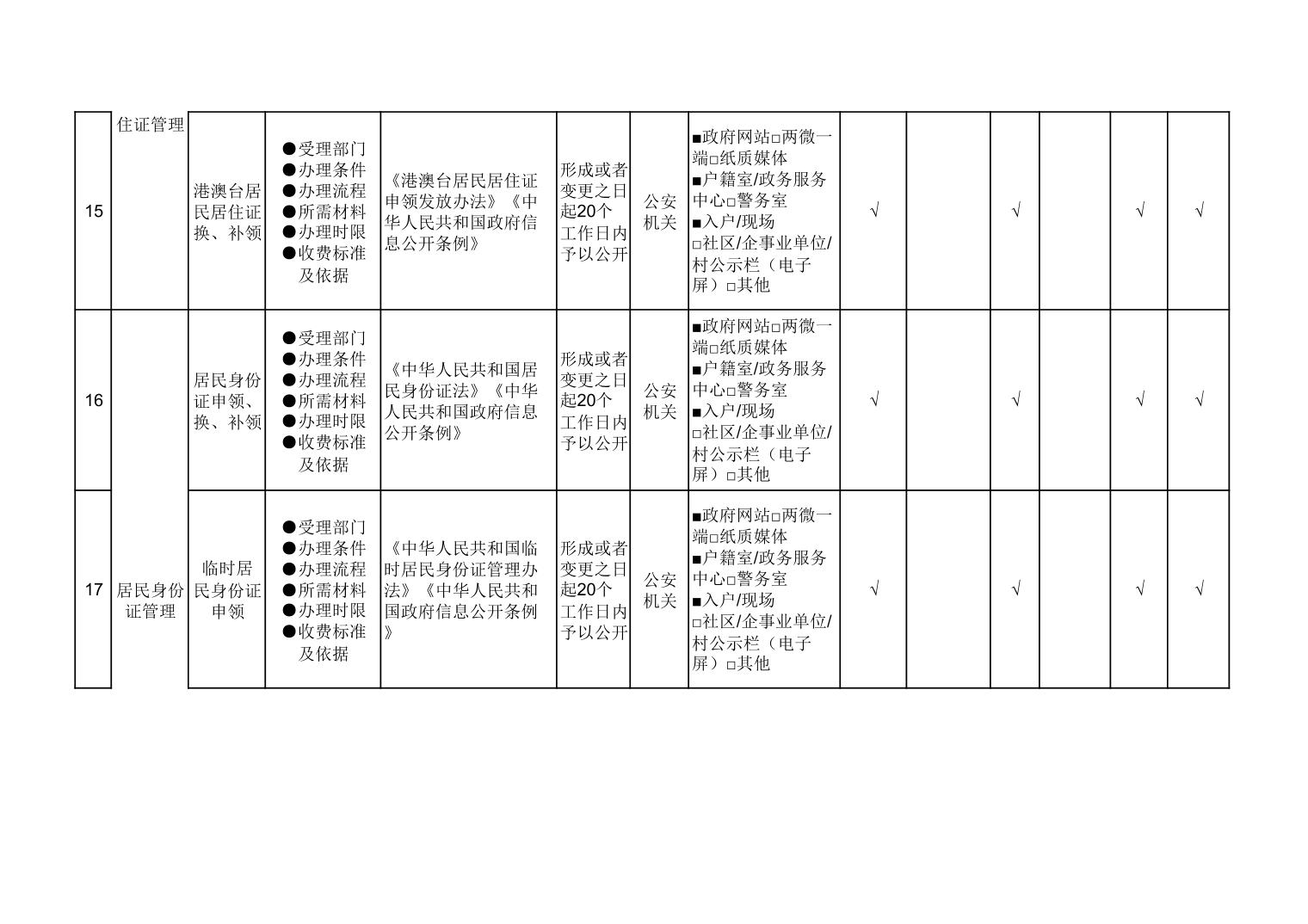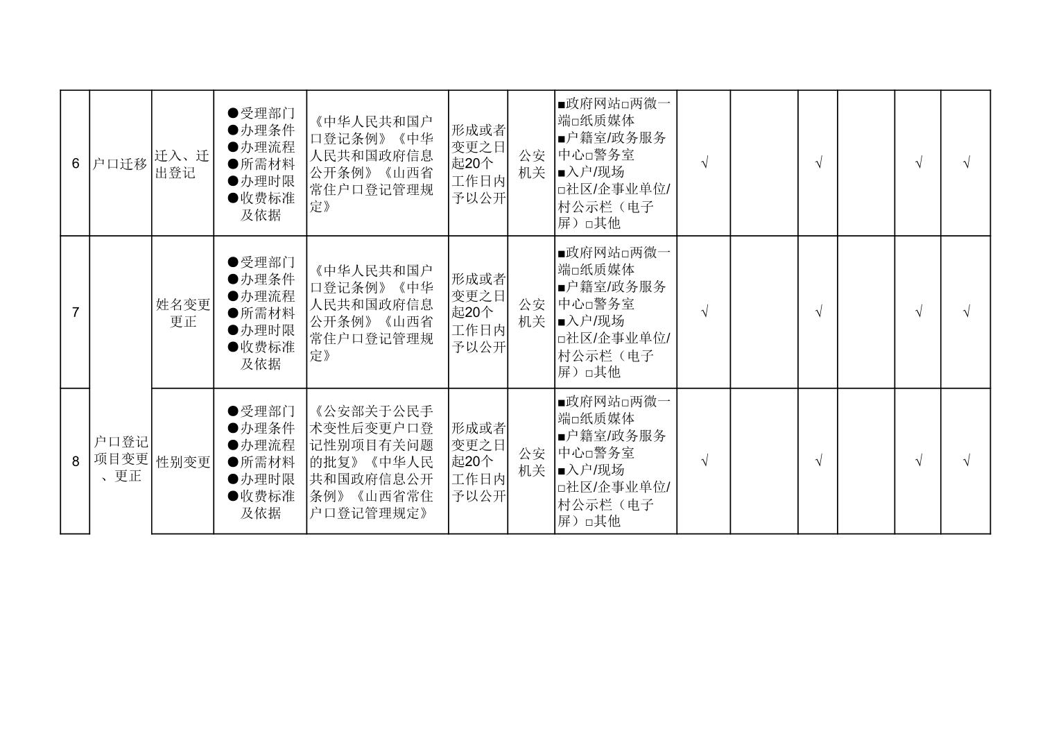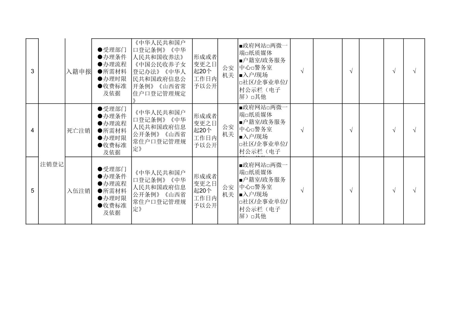 户籍管理领域基层政务公开标准目录