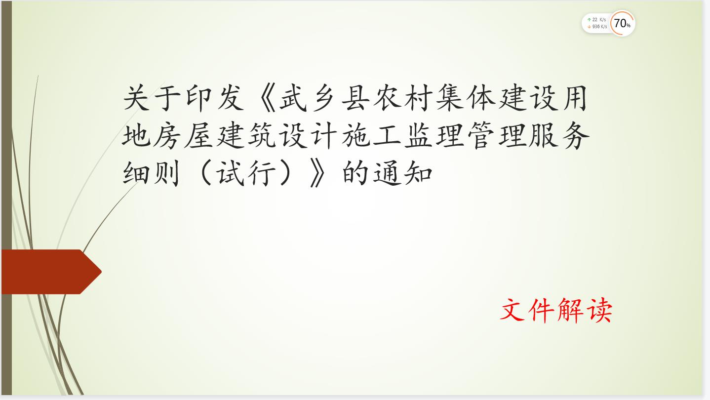 原文:武乡县人民政府办公室关于印发武乡县农村集体建设用地房屋建筑设计施工监理管理服务细则(试行)的通知