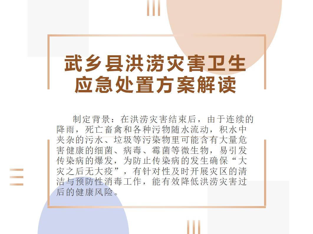 原文:武乡县人民政府办公室关于印发武乡县洪涝灾害卫生应急处置方案的通知