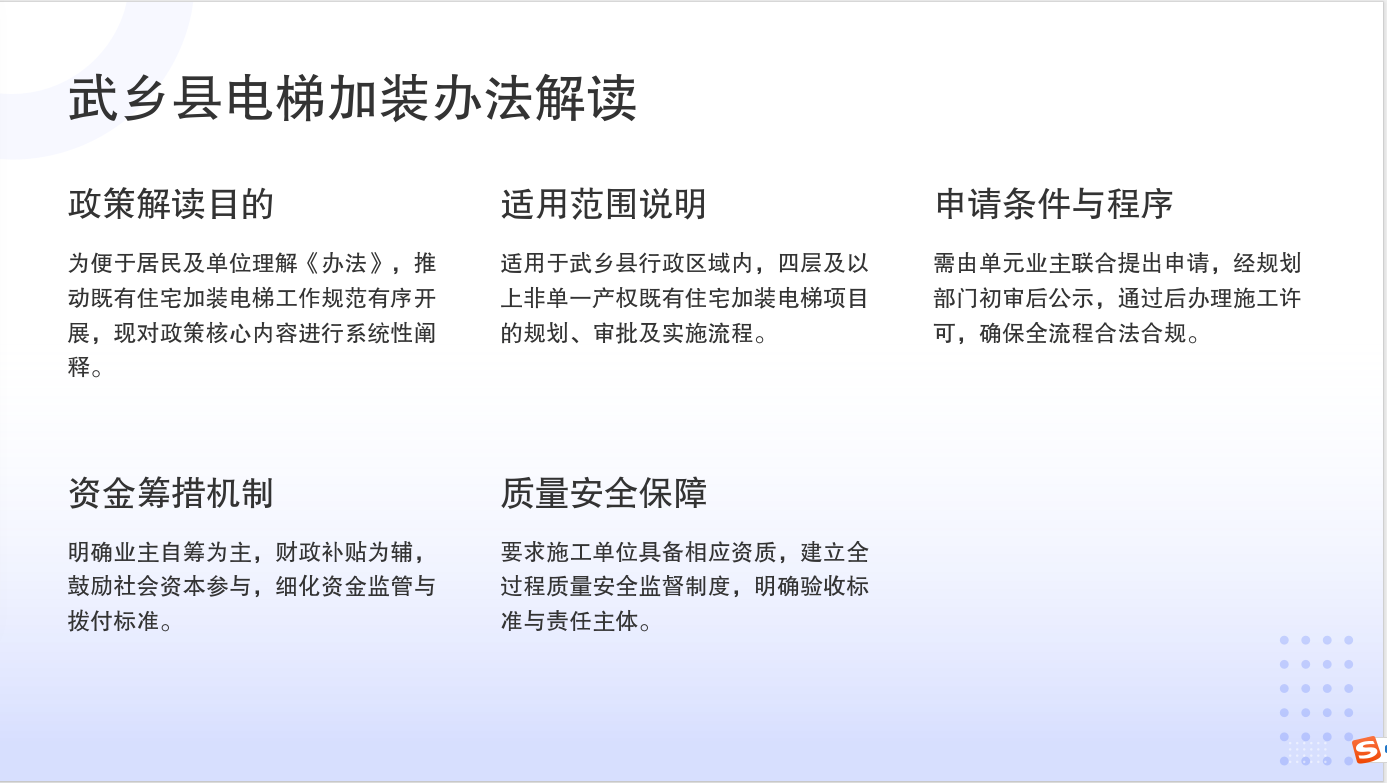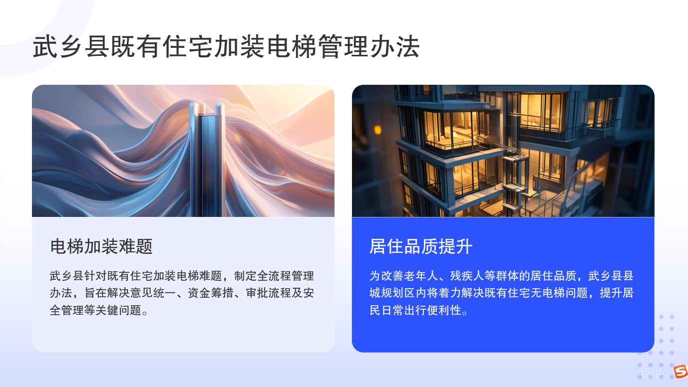 原文:武乡县人民政府办公室关于印发武乡县既有住宅加装电梯实施办法(试行)的通知