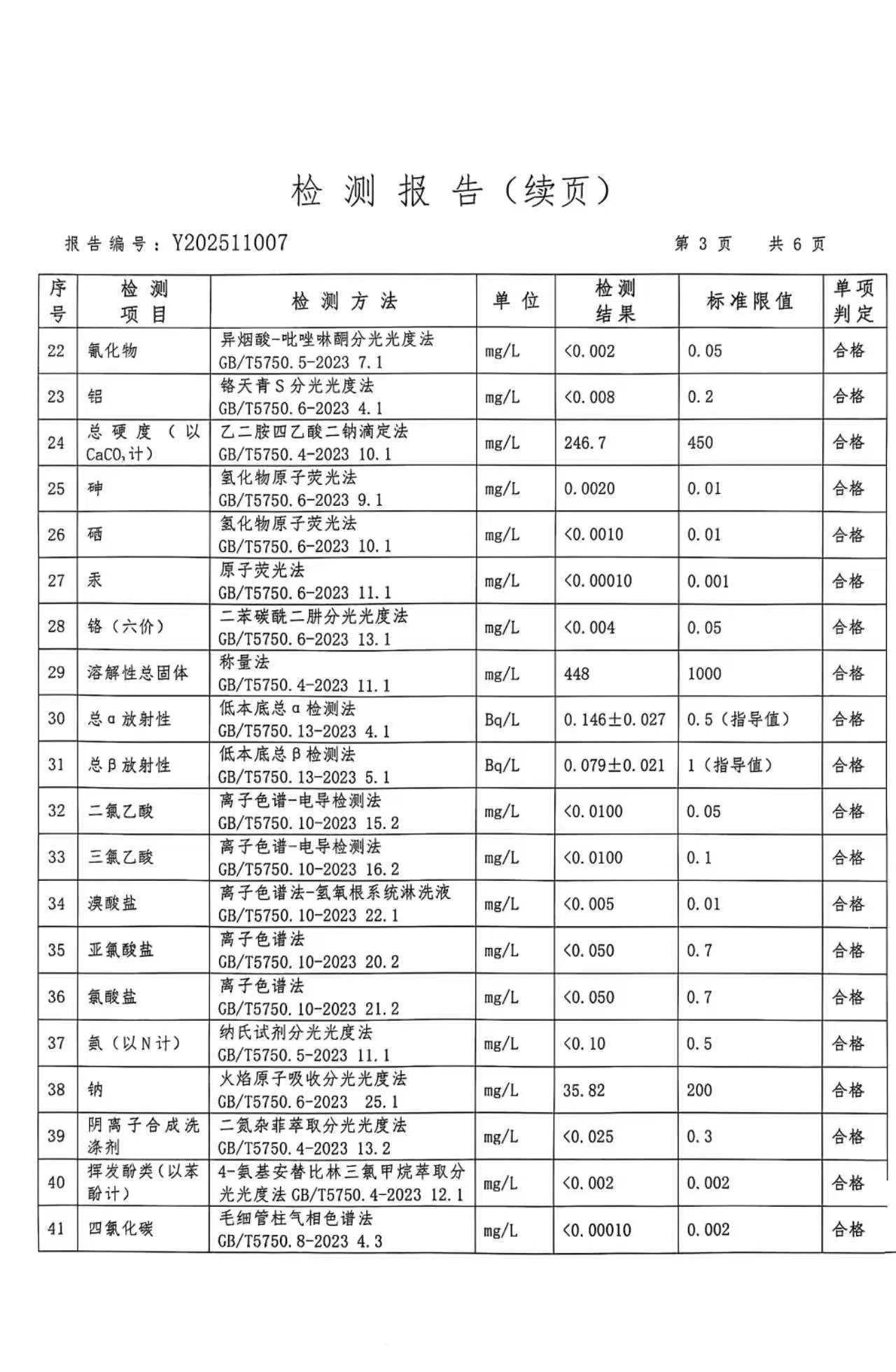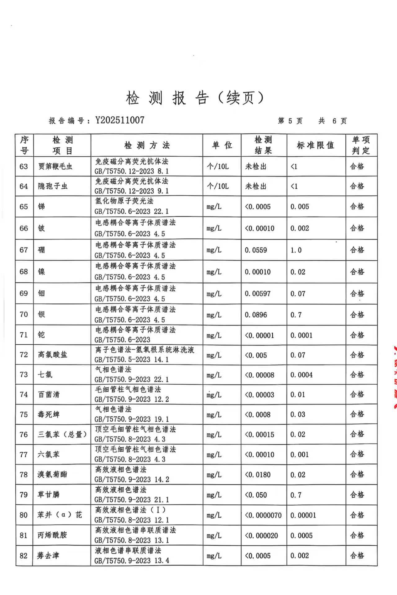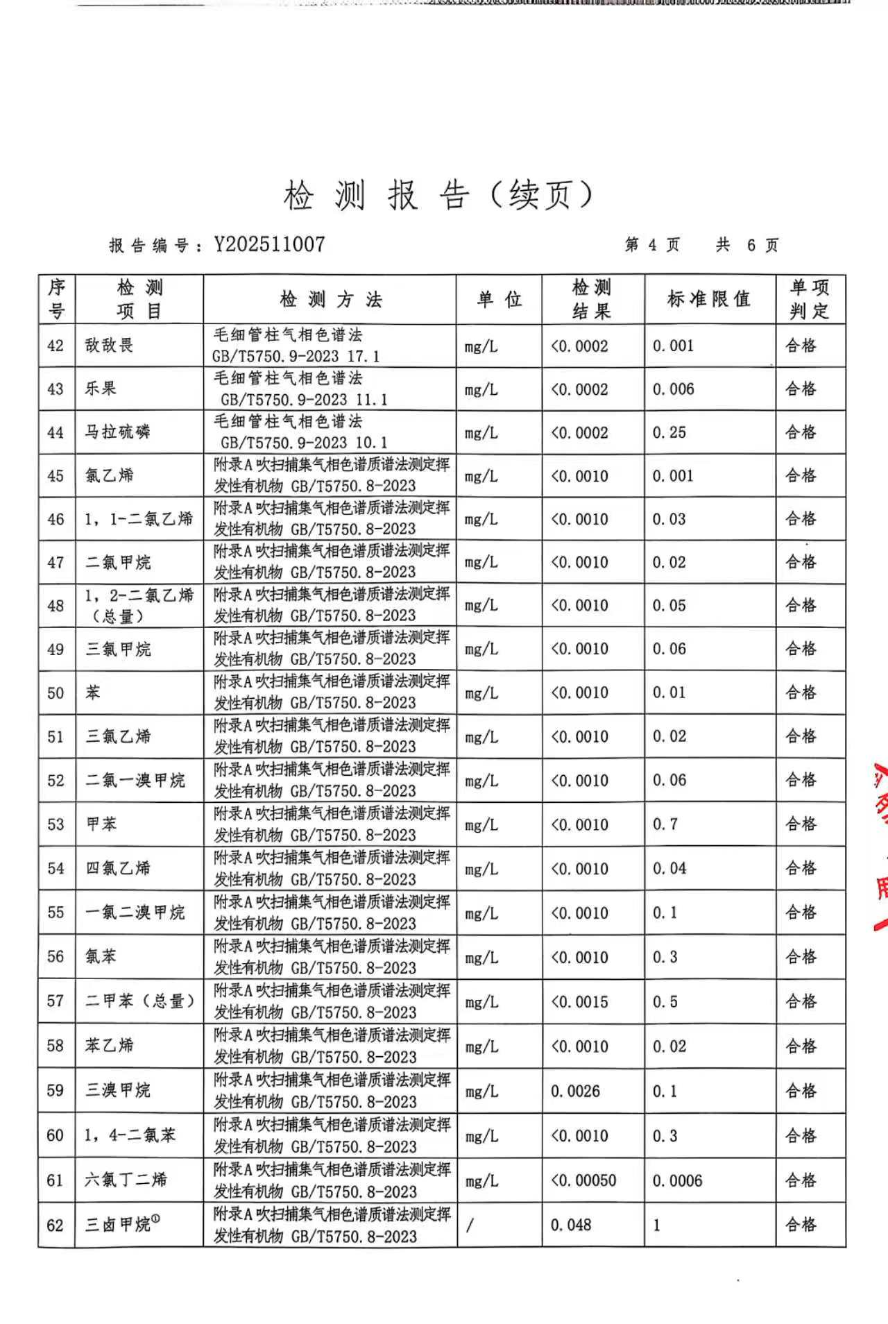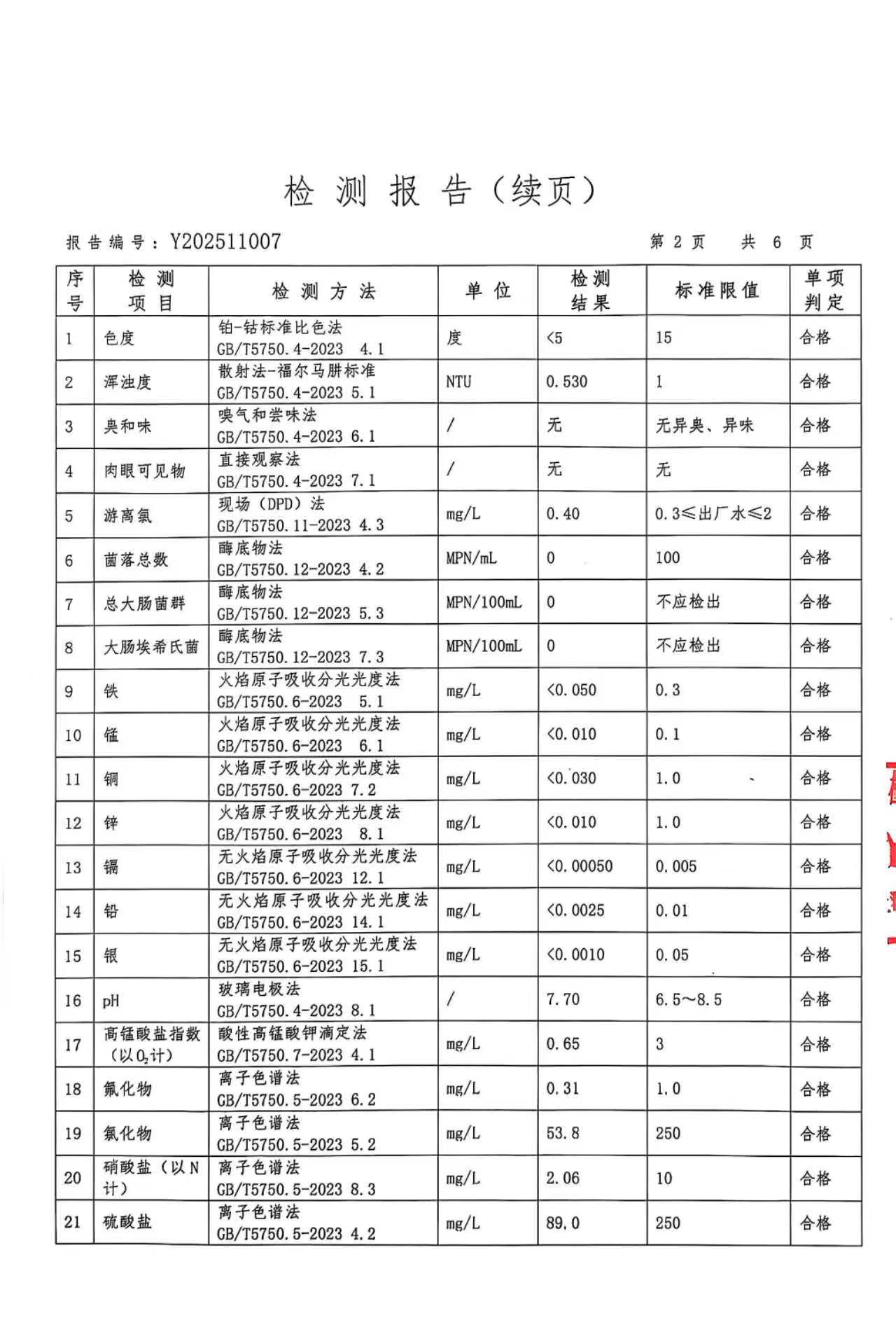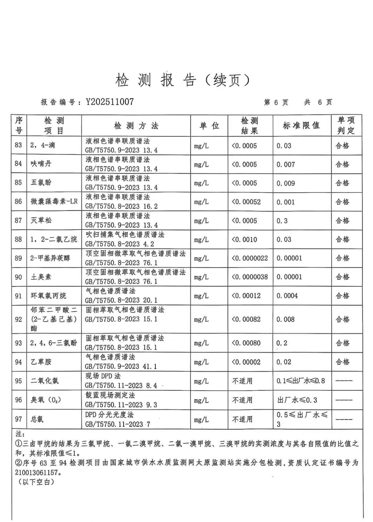 武乡县自来水2025年度水质检测报告