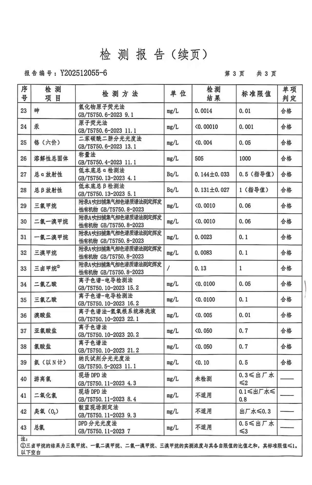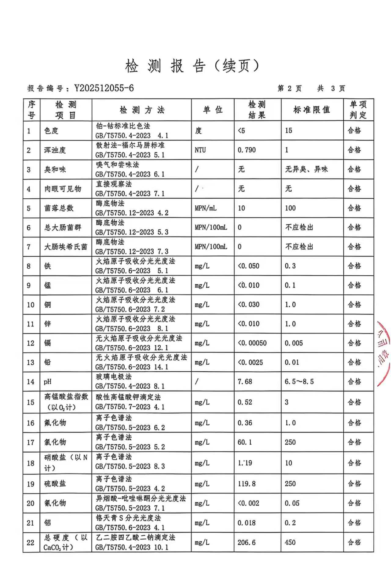 武乡县自来水2025年12月水质检测报告