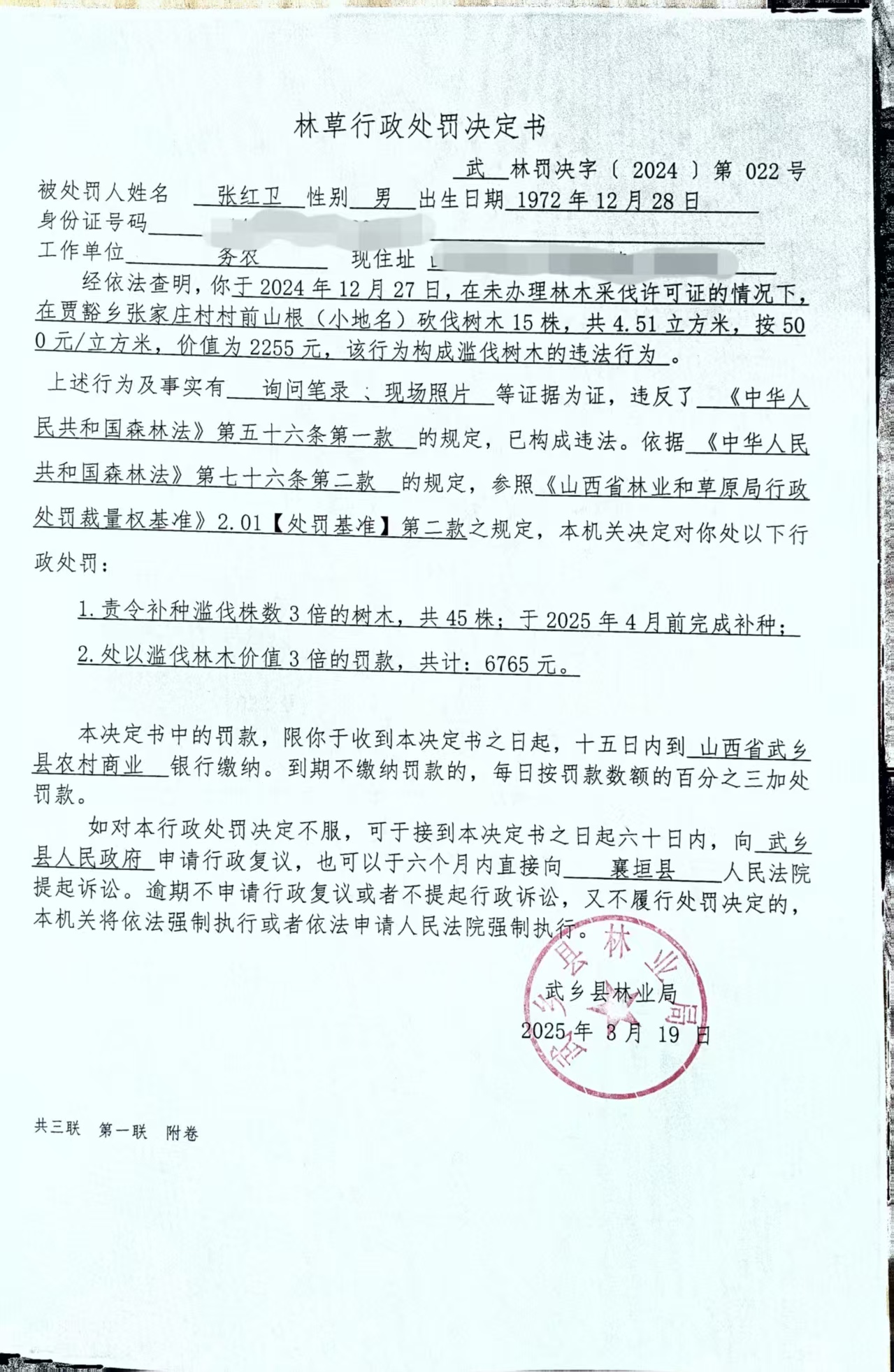 林草行政处罚决定书