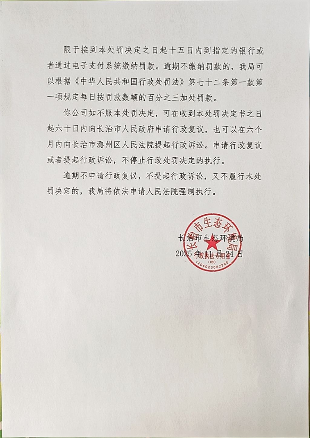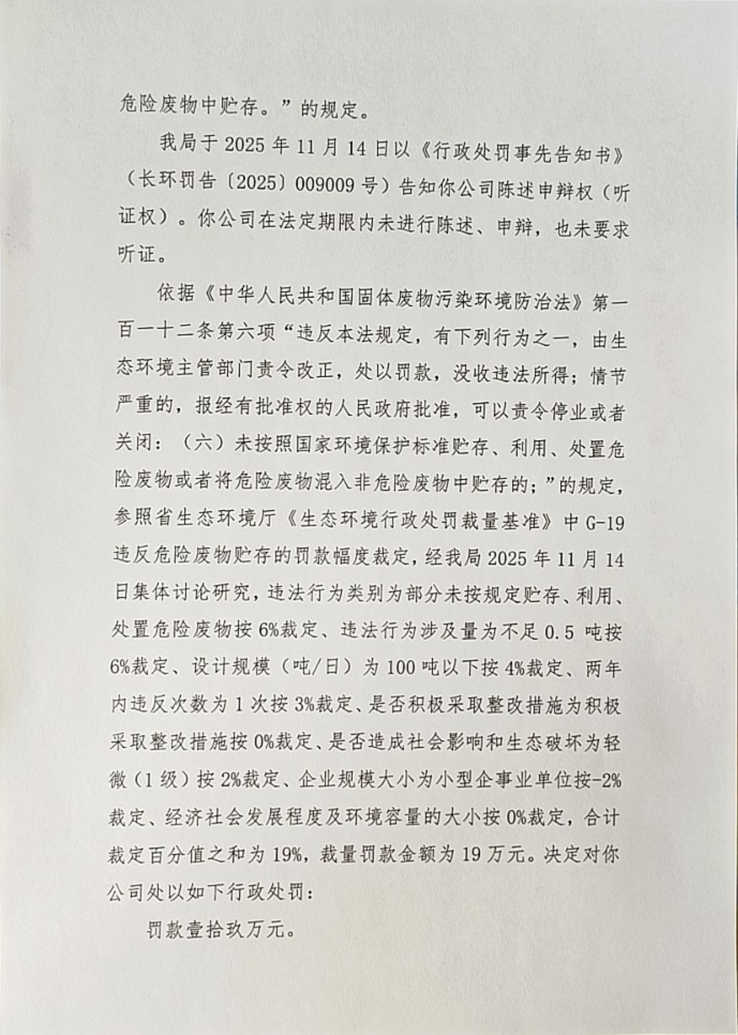 长环罚〔2025〕009009号